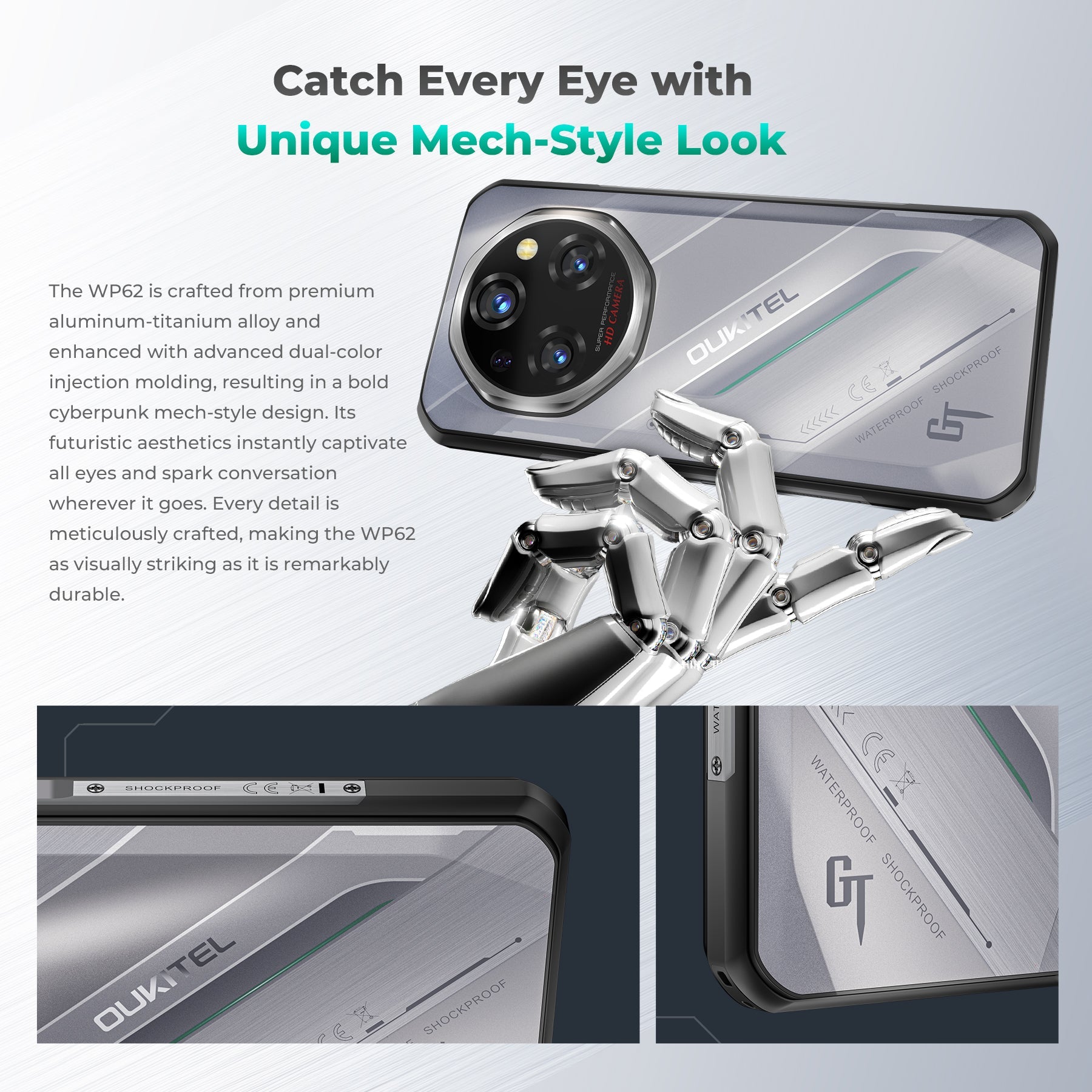 Oukitel WP62 5G Rugged Phone 6.6-inch 11000mAh Battery 108MP Android 15 with NFC(16GB+512GB)